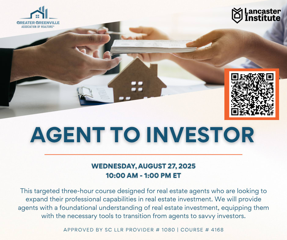Agent to Investor: Strategies for Agents Venturing into Real Estate Investment | 3 hr. Course This targeted three-hour course is designed for real estate agents who are looking to expand their professional capabilities in real estate investment. We will provide agents with a foundational understanding of real estate investment, equipping them with the necessary tools to transition from agents to savvy investors. Participants will learn to ask critical questions before making any investment, utilize essential financial metrics and formulas to evaluate investment opportunities, and understand the tax implications of their investment decisions. The course also delves into practical aspects of real estate investment such as analyzing property expenses, weighing the pros and cons of property management, and exploring various financing strategies. By the end, agents will be able to apply these skills to identify profitable investments, manage investment risks, and optimize their investment portfolio over time.